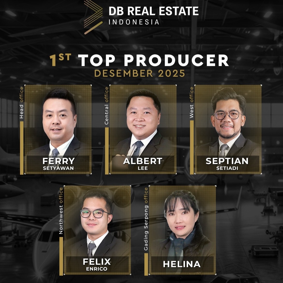 Warmest congratulations to DB Real Estate Indonesia's Top #1 of the Month, Mr. Ferry Setyawan, Mr. Albert Lee, Mr. Septian Setiadi, Mr. Felix Enrico and Mrs. Helina! 🎉